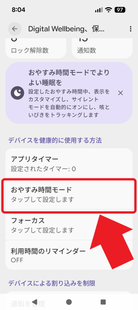 - おやすみ時間モード:就寝中の通知を制限し、画面をモノクロにしてくれる