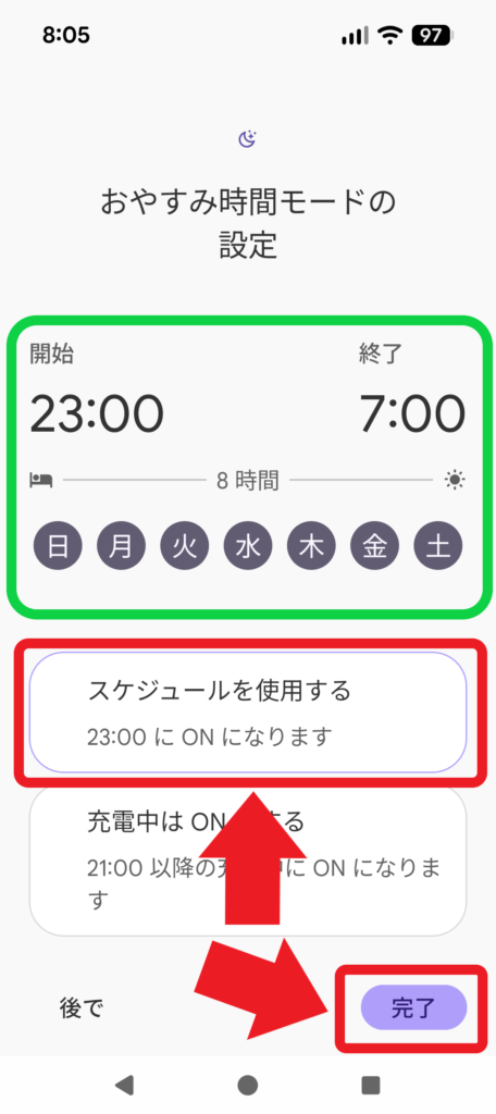 これで設定は完了です! 設定した時間になれば、自動的におやすみ時間モードが発動します。